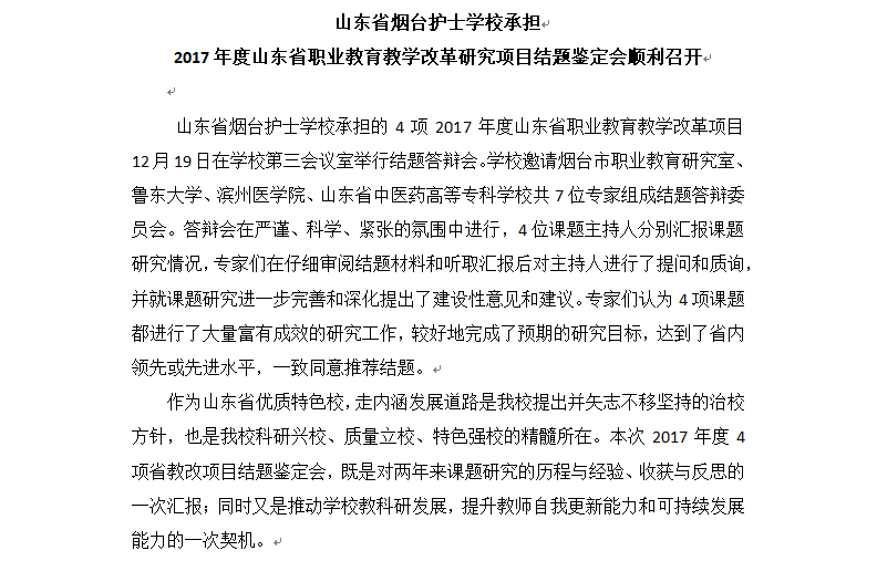 山东省烟台护士学校承担 2017年度山东省职业教育教学改革研究项目结题鉴定会顺利召开